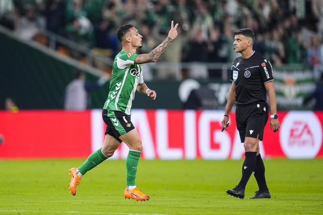第83分钟,安东尼被提前换下,接受贝蒂斯球场的顶礼膜拜,贝蒂斯官方更是第一时间晒出安东尼与队友共同庆祝进球的视频并附文:“GOAT本场心情很好”来盛赞其表现。