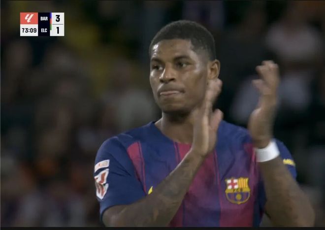 拉什福德周日延续了出租到巴萨的出色表现,他在球队3-1击败埃尔切的西甲联赛打入精彩的一球,被换下时,28岁的英格兰边锋获得了路易斯·康帕尼斯奥林匹克球场观众全体起立鼓掌致敬。